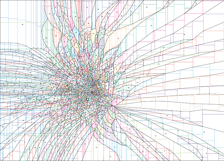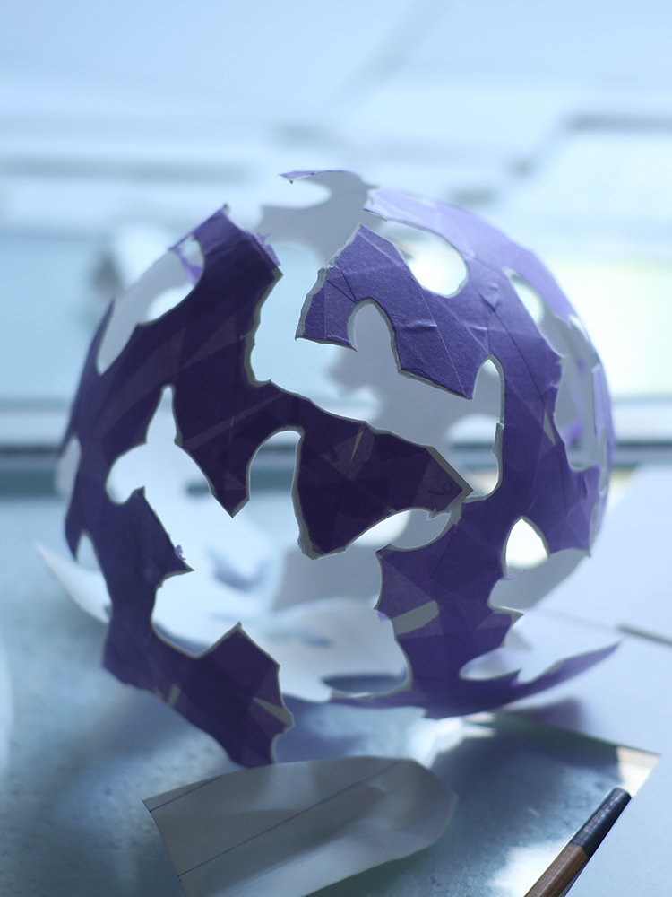 The surface of a sphere is unique in that it has no edges. Cutting it out and laying it flat is tantamount to inventing edges for it. While in geometry it is not possible to ‘flatten’ a sphere, in practice you can cut the surface of a grapefruit or an orange in one piece and lay it out on a flat surface. It is possible, provided that the path that will give the cut-out its outline has travelled through all the regions of the sphere without ever intersecting or returning to its starting point.
